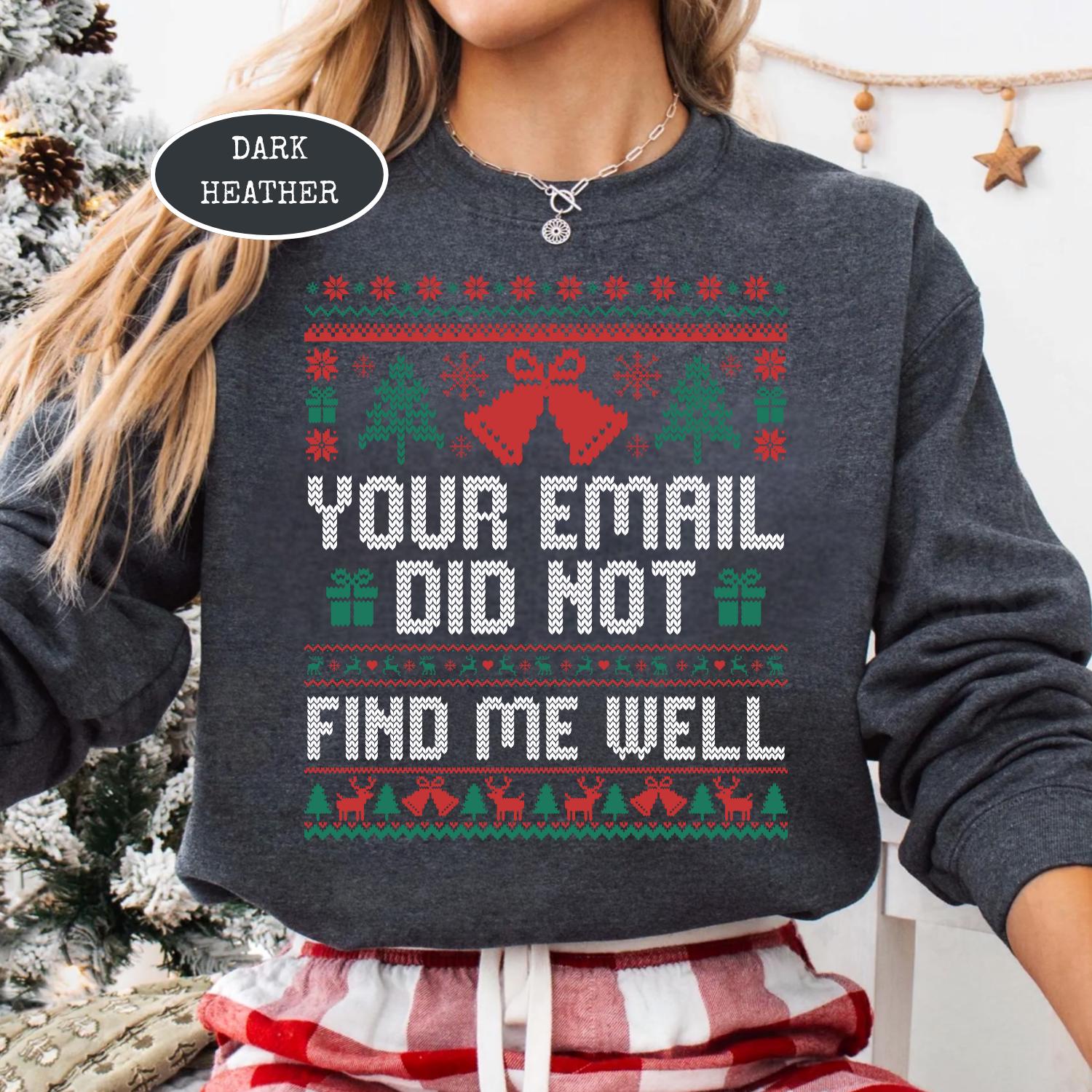 Your Email Did Not Find Me Well Ugly Christmas Sweatshirt, Gildan 18000 Unisex, Perfect for Office Party, Printify Choice, Cozy Holiday Gift